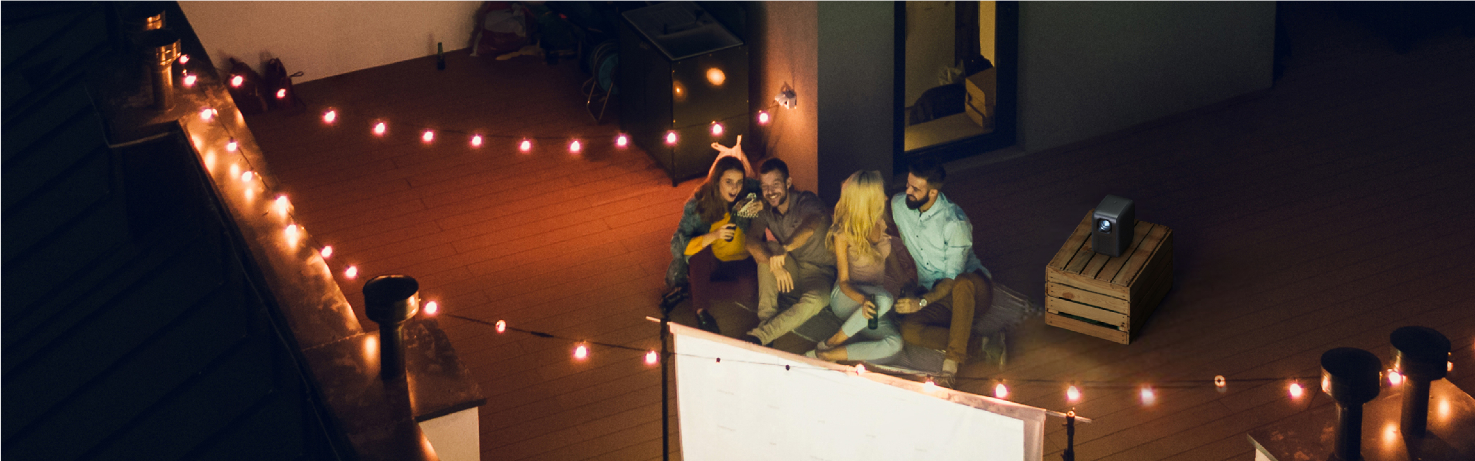 Enjoy your leisure family time with our portable projector. A large screen and diffuse reflection technology help you enjoy movies with less direct eye damage.